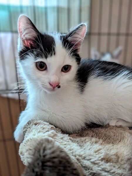 | 特徴(性格など) | 仮名:アローくん 毛色:白黒 半長毛 性別:オス♂ 月齢:推定生後約3か月 保護した日:2023年4月29日 ノミ取り・検便・駆虫済 ワクチン接種1回済 エイズ・白血病検査共に陰性 お鼻の下のホクロが可愛い、ふわふわ半長毛の男の子です。 ちょっとこわがりなところがありますが、優しい性格です。 ごはんの時にはナデナデさせてくれるようになり、少しずつ人馴れしてきました。 アローくんのペースで、ゆっくりと見守ってくださるご家族を希望します。 兄弟のジローくん、ゴローくんと、いつもじゃれあって遊んでいます。 ペットでは無く「家族」としてお迎え頂けるお家、「家族」が行方不明にならないよう、また、ご自身も苦しい思いをしなくて済むよう、脱走防止対策をご家族全員が理解されているお家、お外は怖いという共通の価値観の方とのご縁をお待ちしています |