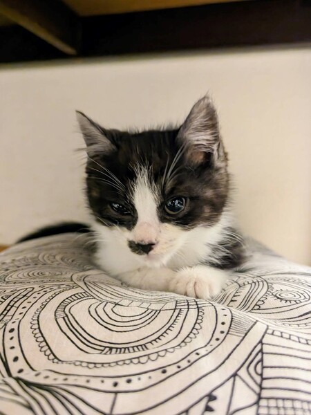 | 特徴(性格など) | 仮名:ゴローくん 毛色:ハチワレ 半長毛 性別:オス♂ 月齢:推定生後約3か月 保護した日:2023年4月29日 ノミ取り・検便・駆虫済 ワクチン接種1回済 エイズ・白血病検査共に陰性 ふわふわ半長毛の男の子、鼻まわり汚れ隊! まだすこしこわがりなところがありますが、少しずつ人馴れしてきて、ナデナデさせてくれるようになりました。 ゴローくんのペースで、ゆっくりと見守ってくださるご家族を希望します。 兄弟のアローくん、ジローくんと、いつもじゃれあって遊んでいます。 ペットでは無く「家族」としてお迎え頂けるお家、「家族」が行方不明にならないよう、また、ご自身も苦しい思いをしなくて済むよう、脱走防止対策をご家族全員が理解されているお家、お外は怖いという共通の価値観の方とのご縁をお待ちしています |