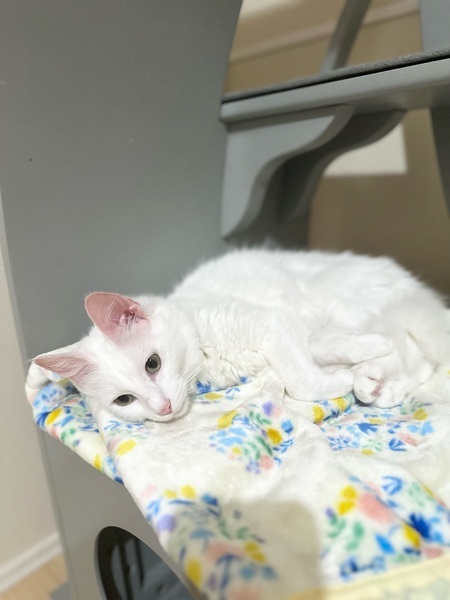 | 特徴(性格など) | シルクのようなコートを持つターキッシュアンゴラという種類の猫です。 物怖じしない社交的な性格で、新しい環境にも他の猫にもすぐに慣れてくれます。 他の猫さんに少しくらい威嚇されても、めげずに自分から挨拶に行きます。 小型犬とも問題なく生活できました。 ちょっぴり不思議ちゃんな明るくポジティブな性格です♪ もちろん人間のことも大好きで、撫でらるのも抱っこも好きです。 自分から膝の上に乗ってきて寝てくれます。 爪切りやコーミングもお利口にさせてくれます。 人間に威嚇をしたり噛みついたり攻撃してきたことは一度もなく、優しくフレンドリーです。 色々な物に好奇心旺盛で、遊ぶことも大好きです。 人間とおもちゃで遊んだり、他の猫と追いかけっこしたり、一匹でも上手に遊んでいます。 日中は日向ぼっこして寝ており、お留守番も上手にできます。 ただアクティブで食いしん坊なため、物が多いご家庭には向いていないかもしれません。 また、長毛なので頻繁にコーミングのお手入れが必要です。 ふわふわで美人さんのアメリアちゃんを沢山可愛がってくださる方を募集致します♪ ★しっぽ→まっすぐ長い ★毛色→ホワイト ★目の色→グリーンイエロー ★体重→3㎏位 ☆不妊去勢手術済 ☆ワクチン済 ☆ノミダニ取り済 ☆駆虫済 ☆マイクロチップ挿入済 ☆トイレしつけ済 ☆ウイルス検査 エイズ 陰性、白血病 陰性 ▼△▼譲渡会情報▼△▼ ねこけん譲渡会in島忠ホームズ仙川店 毎月[第4]日曜日開催 12:00~16:00 ↓詳しくはイベントをご確認ください↓ https://satoya-boshu.net/event/?@button_name@=search&Event_MemberID=1288 |