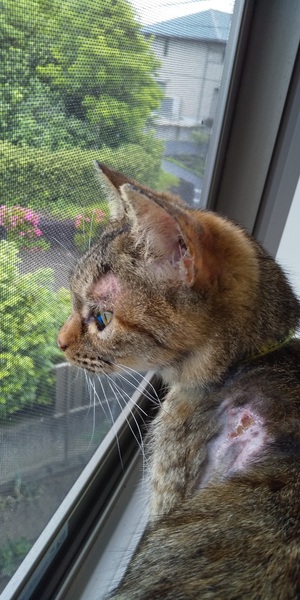| 里親募集する理由 | 知人の代理投稿になります。 保護主の敷地に怪我をした状態で現れました。保護主宅には老猫がおり、この子がいることによりストレスを感じているようですので、里親募集をさせていただきます。 |