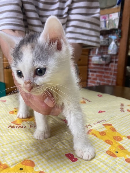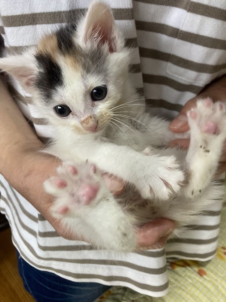 | 里親募集する理由 | 仕事中に子猫を見つけ、ご近所の方に事情を4月ごろに生まれ、空き家の庭に住み着いているようです。 母猫は避妊手術していないので毎年のように生んでいるようだと話していました。 取り合えず、子猫を保護して、いずれは母猫も保護し、避妊手術しようと考えています。 |