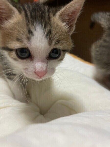 | 特徴(性格など) | ◆にじくん 膝乗り甘えん坊のちびっこキジ白くん ●月齢の小さな子猫は、以下の条件についてご了承の上で応募をご検討下さい。 ◆お留守番の少ないご家族を希望します。 ◆2匹でお迎えくださるご家族を優先いたします。 ◆小さなお子様のいるご家庭は状況によりお断りする場合がございます。 ◆高齢者のみのご家族からの子猫のお申し込みはお受けしていません。 ○横浜市内にて保護されました。 ○生後1ヶ月半くらい(2023年4月15日生まれ)のキジ白ハチワレの男の子です。体重は560g(2023年5月23日時点)です。 ○穏やかな性格でとても人懐っこいです。 ○すぐに膝に乗ってくる甘えん坊さん。 ○元気にすくすく育っています。 ★ワクチン1回済み。 ★猫エイズ、猫白血病ともに陰性。 ★不妊手術は成長と体調を見て実施予定です。 ○YouTubeにも動画をあげています。こちらもご覧下さい。 「はやの」「にじ」 https://youtu.be/zndCpbKJ7Gs 「はやの」「にじ」「あざみ」その1 https://youtu.be/kN3t1xmfwaw 「はやの」「にじ」「あざみ」その2 https://youtube.com/shorts/vqcVqvPUjqw ★★Zoomアプリを使用して、リモートお見合いを設定することも可能です。まずはお申込みください★★ |