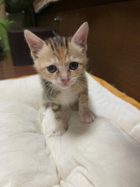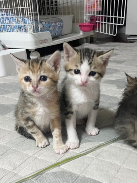 | 特徴(性格など) | ◆あざみちゃん 兄妹でよく遊ぶ人懐こいちびっこ三毛ちゃん ●月齢の小さな子猫は、以下の条件についてご了承の上で応募をご検討下さい。 ◆お留守番の少ないご家族を希望します。 ◆2匹でお迎えくださるご家族を優先いたします。 ◆小さなお子様のいるご家庭は状況によりお断りする場合がございます。 ◆高齢者のみのご家族からの子猫のお申し込みはお受けしていません。 ○横浜市内にて保護されました。 ○生後1ヶ月半くらい(2023年4月15日生まれ)の三毛女子です。体重は600g(2023年5月23日時点)です。 ○体はうり坊柄でとってもキュート♬ ○穏やかな性格でとても人懐っこいです。 ○すぐに膝に乗ってくる甘えん坊さん。 ○同じく里親募集中の「にじ」「はやの」と兄妹で、活発によく遊びます。 ○元気にすくすく育っています。 ★ワクチン1回済み。 ★猫エイズ、猫白血病ともに陰性。 ★不妊手術は成長と体調を見て実施予定です。 ○YouTubeにも動画をあげています。こちらもご覧下さい。 「はやの」「にじ」「あざみ」その1 https://youtu.be/kN3t1xmfwaw 「はやの」「にじ」「あざみ」その2 https://youtube.com/shorts/vqcVqvPUjqw ○6/11(日)開催の譲渡会に参加予定!下の要項をお読みいただき、ぜひ会いに来てください♪ ☆★☆★☆★☆★☆★☆★☆★☆★☆★☆★☆★☆★☆★☆★☆★☆★☆★☆★☆ ~6月11日(日)新山下にて譲渡会開催!~ ◎場所・・「島忠ホームズ 新山下店」 神奈川県横浜市中区新山下2丁目12−34 JR根岸線「桜木町駅」より横浜市営バス(8.26.58.148系統)乗車「貯木場前」より徒歩約5分 みなとみらい線「元町・中華街駅」より徒歩約15分 ◎日程・・6月11日(日)(雨天決行) ◎時間・・12時から15時 【14時30分受付終了】 (会場に利用可能な無料駐車場がございます。そちらをご利用くださいませ。) *参加の際は、マスクの着用、アルコール消毒のご協力をお願いいたします。 *当日は検温の上、体温が37度以上の方はご参加いただけません。 *混雑状況により、中止させていただく場合がございます。 ※参加予定の犬猫は体調により参加できない場合があります。ご了承ください。 ☆★☆★☆★☆★☆★☆★☆★☆★☆★☆★☆★☆★☆★☆★☆★☆★☆★☆★☆ |