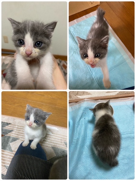| 特徴(性格など) | 【特徴】 グレー白の柄が可愛い。 短い尻尾がとても可愛いです。 【性格】 とても臆病ですが、人は好きなようです。 1番食いしん坊で元気ハツラツです。 ◯壱くんの様子 Instagramにてご覧ください。 ID検索→hskwannyanrescue マイページの活動サイトURLからも直接飛べます。 |