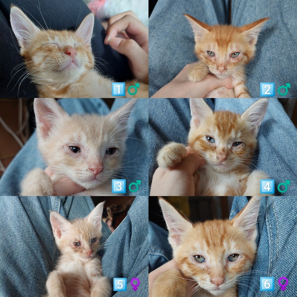 | 特徴(性格など) | 茶トラ4匹(♂3♀1) 薄茶2匹(♂1♀1) |