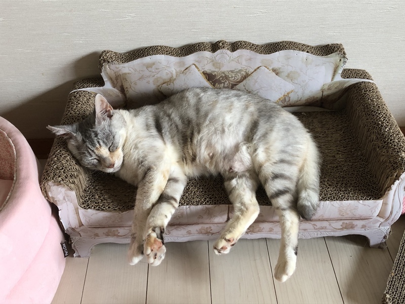 | 特徴(性格など) | 淡い色の三毛ちゃんです! 少し臆病ですが、日に日に警戒心も解け隠れずに目の前で横にってなるようになりました! 推定4歳から6歳でみていただきます。 |