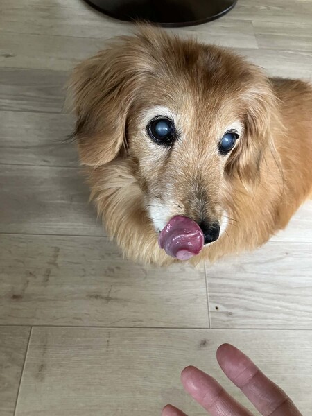 | 特徴(性格など) | ・仮名 ラン ・Mダックスの女の子 ・推定年齢 13歳くらい ・体重 5.15kg ・混合ワクチン接種 済 ・血液検査 済 ・フィラリア(-) ・狂犬病注射 済 ・マイクロチップ装着 済 ・避妊手術 済 今後の医療 ・狂犬病ワクチン ■性格 人とも犬とも問題なく暮らせます。他の子と楽しく遊ぶというタイプではなくマイペースなランちゃん。お家の中をテケテケ歩いてます。目はあまり見えていないと思われますが、家の中では全く感じさせません。触られたり抱っこされたりするのは嫌いじゃないけど自らおねだりしてくる事はありません。 夜も一人で寝てくれます。 ご飯 カリカリフードに野菜をトッピングしてよく食べてくれます。 お散歩 目があまりよくないせいか、スタスタお散歩はしませんが、お庭などがあればクンクンしながら楽しそうにしてくれます。 トイレ 現在、お勉強中。範囲は広いですが、大きなマットの上でしてくれる様になってきています。場所が変わると失敗する事もあるかもしれません。 お留守番 寝ている時間が多いので、お留守番は問題なく出来ると思います。 吠え お腹が空いた時と、不安になった時にたまに吠えます。ダックスの声なのでマンションの方はご近所への配慮が必要になる場合がございます。 お子さんのいるお家も問題ありません。 目はあまり見えていませんが生活するのに全く問題はありません。血液検査もパーフェクト。残りの犬生、今まで頑張ってきた分、幸せになって欲しいです。 終生、愛情をもって大切に可愛がってくださるご家族様との出会いをお待ちしております。 |