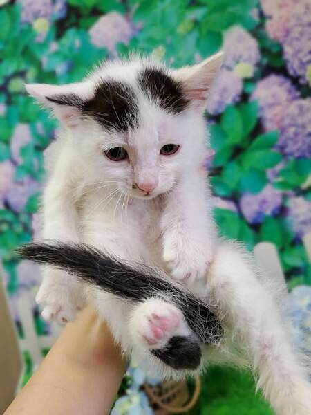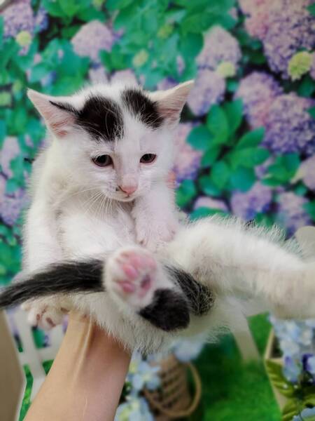 | 特徴(性格など) | 白黒柄と長いシッポと、美形ホクロのふわふわ可愛い男の子です。 保護したてですが、人を怖がる事もなく抱くとゴロゴロと喉を鳴らします。 離乳食も汚さず、きれいにたべます。 受診の際にも、されるがままでゴロゴロいって褒められました。 たくさん保護してきましたが、性格の良さとお世話のしやすさは抜群にいい子だと思います。 はじめて猫を飼う方や抱っこちゃんになって欲しい方にはオススメです。 |