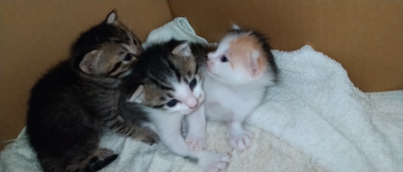 | 特徴(性格など) | 3匹ともとても元気な女の子です。 三毛とキジとサバ柄の女の子達です? |
