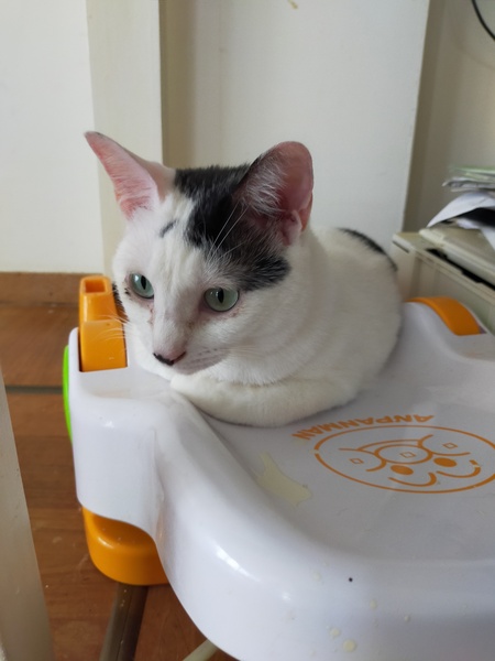 | 特徴(性格など) | 白色に黒 好奇心旺盛、非常に人懐っこい |