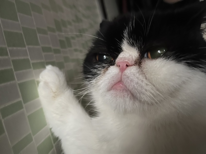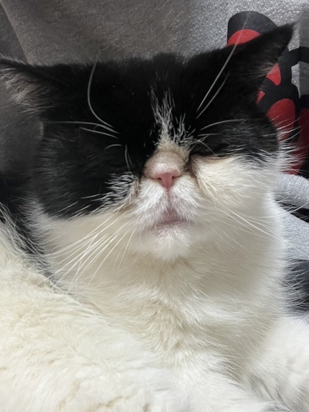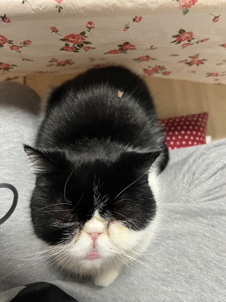 | 特徴(性格など) | 白黒模様です。生まれつき目があまり見えませんが生活には問題ありません。 とても、おっとりしていて一日中寝ています。避妊手術をしたかったのですが血が止まりにくいと病院で検査したところ言われました。病院で何度も検査しましたが避妊手術はしない方が良いとのことです。 |