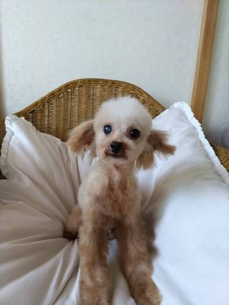 | 特徴(性格など) | トイプードル 色:アプリコット 名前は、あおばちゃん 体重 2.4kg ワクチン 接種済み レボリューション 済み フィラリア 陰性 心雑音 問題なし パテラ 問題無し 避妊手術 済み 今まで繁殖場に居て、人に接することが無かったので、おいでと言っても怖がりますが、寄って行って触ろうとすると伏せます。 噛んだり吠えたりはありません。 優しい子です。 保護して間がないので気長に見て頂ければと思います。 |