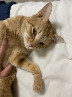 | 特徴(性格など) | とっても人懐っこく、常にそばにいてくれる可愛い男の子です。 物音によく驚いたり臆病な面もありますが、引っ掻いたり噛みついたりもしないとても可愛くて良い子です。 |