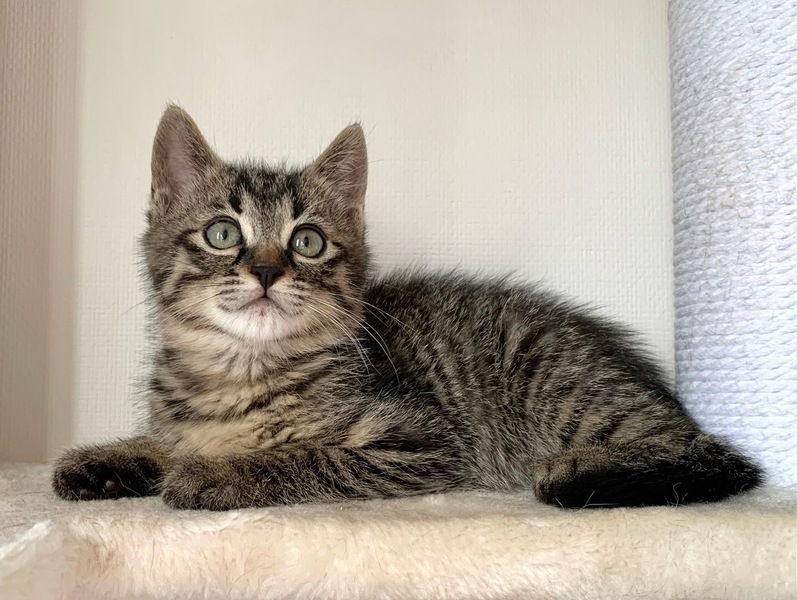 | 特徴(性格など) | 【仮名】豆吉くん 【性格】丸顔キジトラな豆吉くん♪ なんかコロンコロン体型で ヌイグルミみたいなにゃんこなんです♪ 兄妹の中では一番控えめ♪ モロ末っ子気質でお兄ちゃんお姉ちゃんの後ろを 一生懸命ついていきます(笑) 母性本能くすぐる豆吉くんです♪ まだまだ色々学習中なので 兄妹の茶々ちゃんかチビ太くんとのペアで お迎えの方のみ希望します♪ ※1ピキ譲渡不可 |