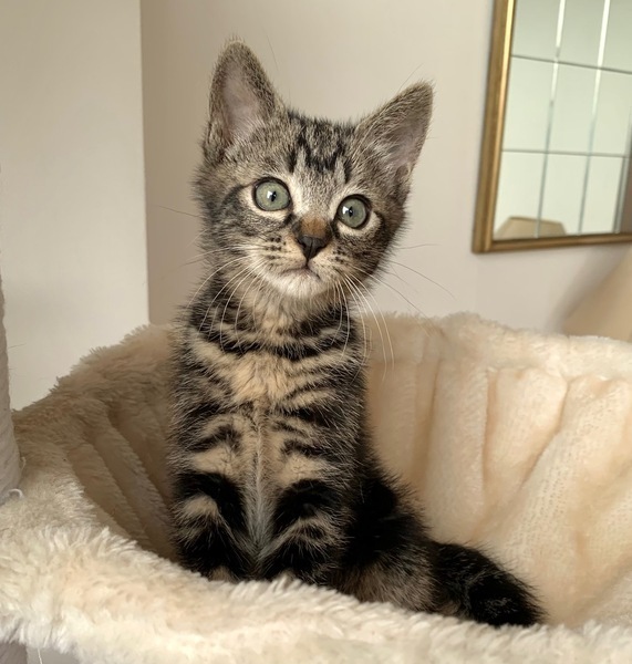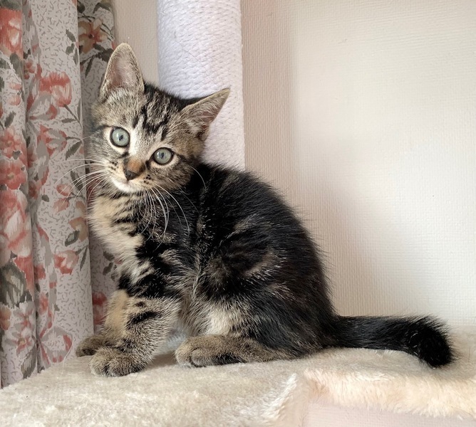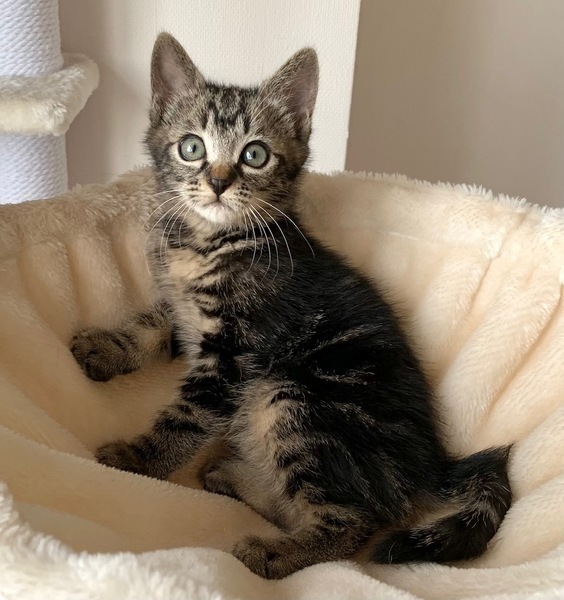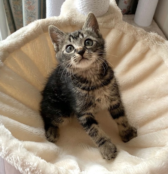 | 特徴(性格など) | 【仮名】チビ太くん 【性格】アメショ風なチビ太くん♪ お顔もイケメンっぷりが溢れ 将来が楽しみなにゃんこですよ♪ 兄妹の中では一番大きく頼れる兄貴な存在です♪ 本人もまだまだビビリなのに弟妹を守る仕草も頼もしい! まだまだ色々学習中なので 兄妹の茶々ちゃんか豆吉くんとのペアで お迎えの方のみ希望します♪ ※1ピキ譲渡不可 |