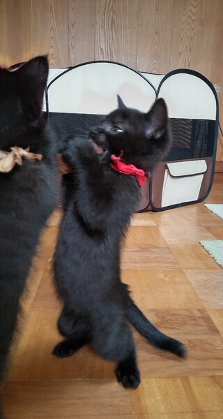 | 特徴(性格など) | とてもおてんば娘です。立ち上がるのが大得意です。 もうすぐカリカリが食べられそうです。 早いですがウィルス検査しています。FIVは弱陽性でしたが母猫からの抗体反応なので今後陰転する可能性があります。ご承知いたあけるとありがたいです。 |
