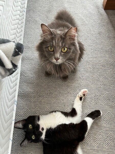 | 特徴(性格など) | 【仮名】じゃじゃ 【生年月日】推定2~4歳 【種類】MIX 【毛色】ブルータビー 【性別】メス 【避妊】済 【ワクチン】済 【駆虫】済 【健康状態】良好 【猫エイズ・猫白血病】共に陰性で問題なし 【性格】好奇心旺盛で探検が大好きです。甘えん坊で目が合うとおしゃべりして「ブラッシングしてください」と転がります。ブラッシングが大好きすぎて順番待ちできずに割り込んできます(*^-^*) 初めての場所も平気で、初めて会う人にも甘えます(*^▽^*)初心者でも飼いやすい猫です♪ほかの犬・猫も慣れると平気です。 ずんだ♂と同じ家の出身です。 |