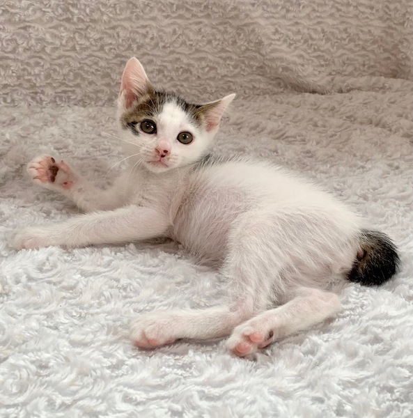 | 特徴(性格など) | 【仮名】エルくん 【性格】不思議ちゃんキャラのエルくん♪ もうインパクトのあるコで一度見たら忘れられないデショ♪ 性格は天真爛漫かつアンポンタンです(笑) いつも転げまわって遊んでます♪ ヒトのおヒザが大好き過ぎて他のコとにゃんプロしてますよ♪ いっつも負けてるけど(笑) とにかく天然で見てて楽しいにゃんこです♪ まだまだ色々学習中なので兄妹か同世代とのペアで お迎えの方のみ希望します♪ ※1ピキ譲渡不可 |