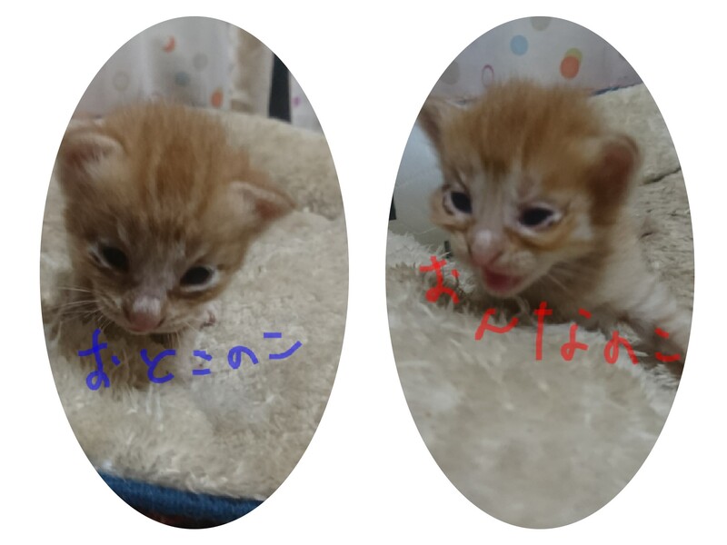 | 特徴(性格など) | 生後1ヶ月くらいの チャトラ♂♀2匹です。 | ||