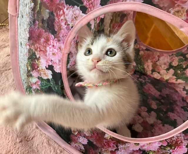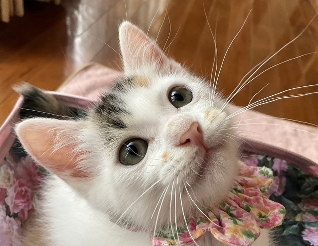 | 特徴(性格など) | ☆☆☆ご希望の方は、以下のアンケートフォームにご記入の上、送信してください☆☆☆ ねこ親希望アンケート→ http://chibawan.net/contactform_cat 【猫No.】3662 【愛称】ふう 【性別】メス 【年齢】生後2ヶ月(23/04月上旬生) 【毛色】三毛・中くらいの長さのしっぽ 【体重】944g(23/06/07現在) 【状態】ノミダニ駆除済、駆虫済、ワクチン接種済(23/05/16)、血液検査済(猫エイズ-・白血病ー) 【保護場所】野田市 【日記】http://instagram.com/kemikemi1206 Instagram @kemikemi1206 【経緯】横浜市動物愛護センターより引き出しました 【性格】三毛ちゃんらしい性格の、ちょっぴりツンデレな女の子です。 被毛は、白三毛猫好きにはたまらない、白が多めの美しい三毛です。 手足が短かめで身体つきが丸っこくころんとしており、ころころ走りまわる姿がとても愛らしいです。 知らない場所や人に対してはじめは緊張しますが、慣れれば元気で活発に遊びます。 かけっこや探検が大好きです。 ミルクから人の手で育てられているため、人が大好きで、撫で撫でや抱っこをすると、コロコロと喉を鳴らして喜びます。 他猫にははじめは唸ったりしていましたが、慣れれば仲良く遊べます。 預かり宅の先住猫や犬に興味を示していますが、自分から近づいていくのはまだ怖いようです。 まだまだ遊びたい盛りですので、遊び相手となってくれる先住猫さんがいるか、姉妹のりんと一緒に迎えて下さるご家庭を希望します。 育ち盛りのふうの日々の様子や、育児日記の悲喜こもごもなどをインスタグラムに毎日アップしています。 子猫との生活がどんなものか、また、ふうの性格なども垣間見えるかと思いますので、ぜひご覧下さい。 【補足事項】お届けは、不妊手術・マイクロチップ装着などの医療処置が終わってからを予定しています。(6月24日、手術予定です) 【その他】完全室内飼育で終生愛情を持ち、ふうに合わせた生活スタイルで暮らしてくださる方、脱走対策に細心の注意を払い、労を惜しまず入念に脱走対策を講じて下さる方、定期的なワクチン接種や、その時々において必要な医療処置等の健康管理を約束していただける方からのお問い合わせをお待ちしております。 可愛いふうに会いに、預かり宅までいらして下さい! ※大変申し訳ないのですが、猫が幼齢のため、55歳以上の方からのお申し込みはお断りいたします。 ※猫との暮らしが初めてのお子さまには、アレルギー検査をお勧めしております。(短時間猫と触れ合った経験だけではアレルギーの有無はわかりません) 責任ある終生飼育には必要なことですので、ご理解下さいませ。 |