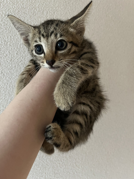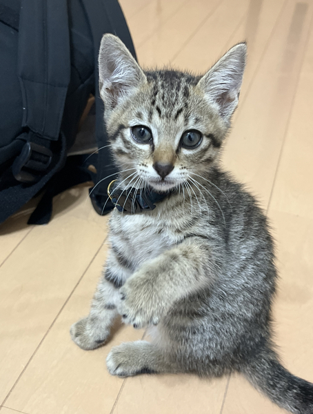 | 特徴(性格など) | 生後2ヶ月のキジトラです! 人馴れしていて噛んだり引っ掻いたりすることはありません 好奇心旺盛で元気に動き回っています! トイレもすぐに覚えてくれました |