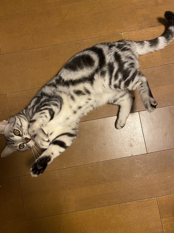 | 特徴(性格など) | アメリカンショートヘアのシルバータビーで、柄がはっきりしたイケメン君です。 ツンデレな性格です。 |