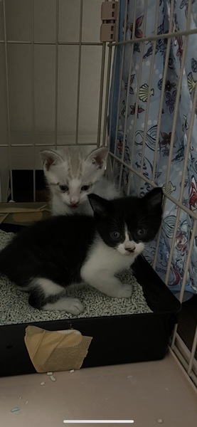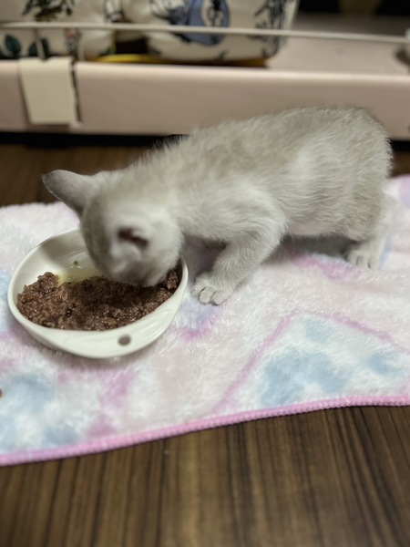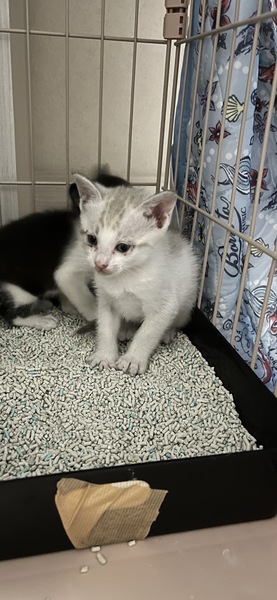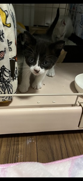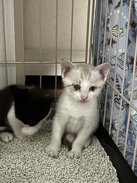 | 特徴(性格など) | 黒白ちゃん鼻の所に模様があります。 サバ白系の可愛い子です。 生後3週間です。 |