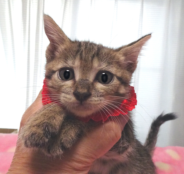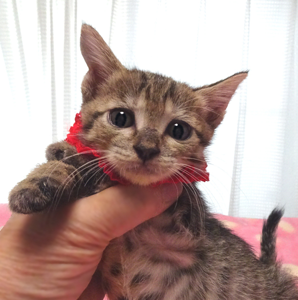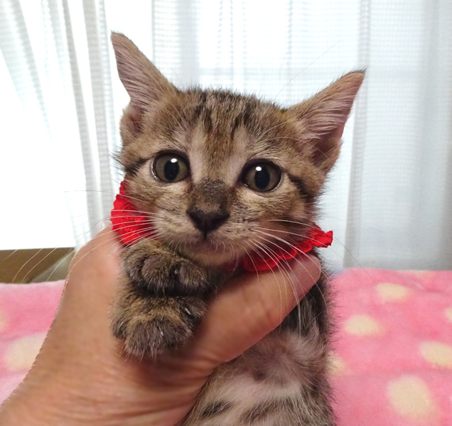 | 特徴(性格など) | 【猫の仮名】 千衣(ちい)ちゃん (担当 松嶋) 【毛色・柄】 キジトラ、長いシッポ 小さくてもトイレができる賢い子です♪ 乳飲み子から育てたので大変人慣れしています♪ 猫を飼うのが初めての方でも大丈夫です♪ 健康状態良好 ●ウイルス検査(エイズ・白血病)兄弟の心(しん)くんで検査して陰性(里親様のご希望により検査可) ●ワクチン 1回 ●蚤取り 1回 ●駆虫 2回 ●検便 2回 ●シャンプー 2回 走っても大丈夫なペット可のお住まいで、家族の一員として生涯大切にして下さるご家族を募集しています。 まだ小さいので猫だけのお留守番が長時間でないご家族を希望します。 ご高齢の方は後継者のおられる方を希望いたします。 |
