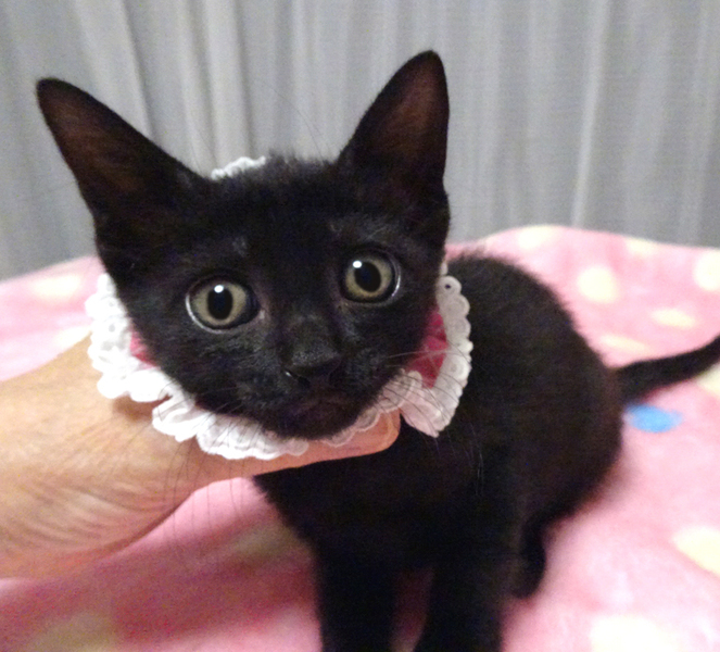 | 特徴(性格など) | 【猫の仮名】 ももクロちゃん (担当 松嶋) 【毛色・柄】 黒、長いシッポ 小さくてもトイレができる賢い子です♪ 乳飲み子から育てたので大変人慣れしています♪ 猫を飼うのが初めての方でも大丈夫です♪ 健康状態良好 ●ウイルス検査(エイズ・白血病)陰性 ●ワクチン 1回 ●蚤取り 1回 ●駆虫 2回 ●検便 2回 ●シャンプー 2回 走っても大丈夫なペット可のお住まいで、家族の一員として生涯大切にして下さるご家族を募集しています。 まだ小さいので猫だけのお留守番が長時間でないご家族を希望します。 ご高齢の方は後継者のおられる方を希望いたします。 |