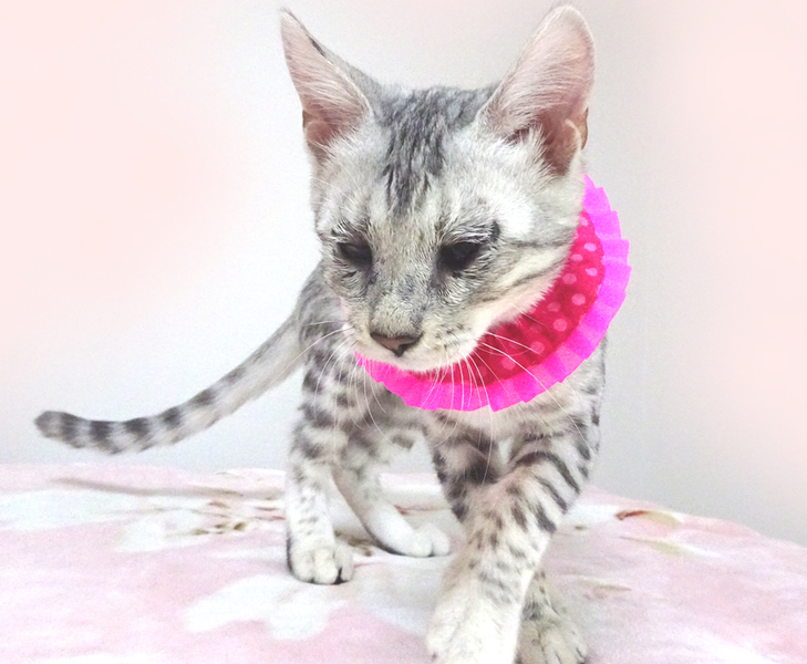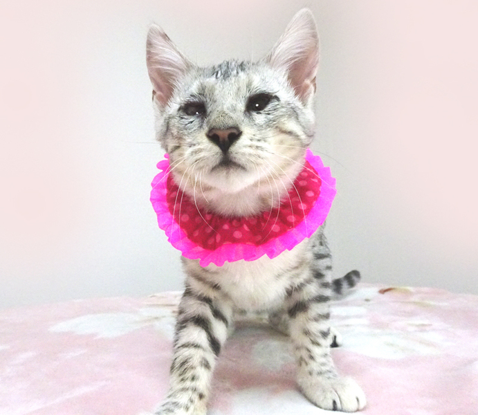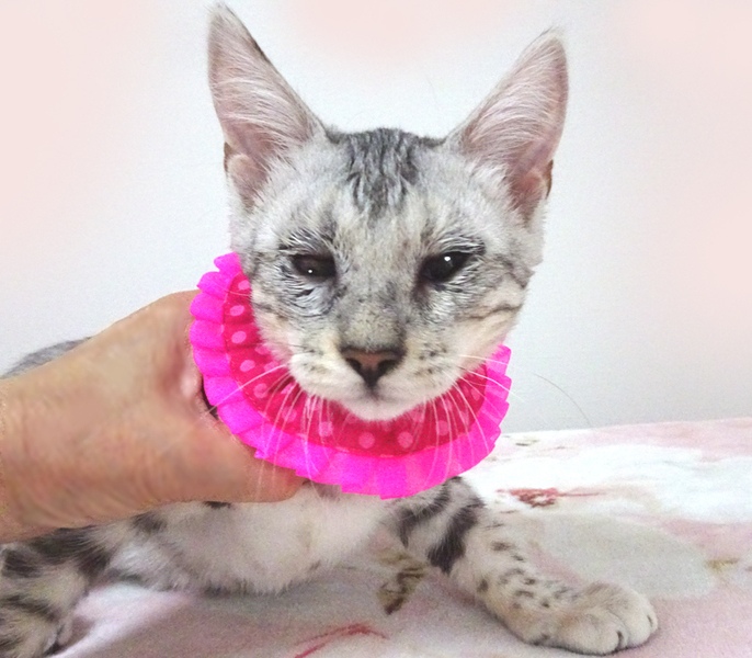 | 特徴(性格など) | 【猫の仮名】 ベニちゃん (担当 松嶋) 【毛色・柄】 シルバーベンガル、血統書なし、長いシッポ 家で生まれ育ったので、なれなれで、きれいな子です♪ 猫を飼うのが初めての方でも大丈夫です♪ 健康状態良好 ●不妊手術、開眼手術 ●ウイルス検査(エイズ・白血病)陰性 ●ワクチン 2回 ●蚤取り 1回 ●駆虫 2回 ●検便 2回 猫風邪の後遺症でまぶたの癒着があり、墨田区の谷澤動物病院で不妊手術と開眼手術しました。 右目は成猫になって膜を切れば、大きく開きます。 走っても大丈夫なペット可のお住まいのご家族を募集しています。 お一人暮らしの方は女性に限らせていただきます。 ご高齢の方は後継者のおられる方を希望いたします。 |