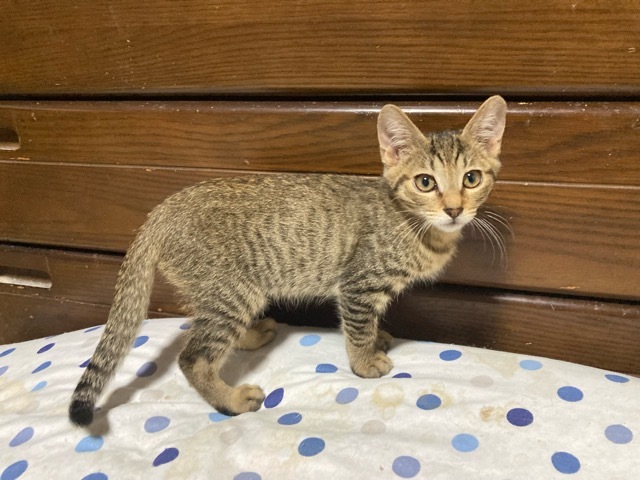 | 特徴(性格など) | ☆☆☆ご希望の方は、以下のアンケートフォームにご記入の上、送信してください☆☆☆ ねこ親希望アンケート→ http://chibawan.net/contactform_cat 【猫No】3667 【愛称】ジロ 【性別】オス 【年齢】3.5ヶ月(23/04/02生)(23/07/01現在) 【毛色】キジトラ 【体重】1.3kg 【状態】ワクチン接種済(23/07/01)、去勢手術済、マイクロチップ装着済、血液検査済(エイズ−・白血病−)、駆虫済、ノミダニ駆除済、トイレ躾済 【預かり場所】横浜市 【日記】https://www.instagram.com/himeborder0426/ Instagram @himeborder0426 【経緯】千葉県動物愛護センター東葛飾支所よりの引き出し 【性格】ヤンチャな男の子、人も猫も平気、仲良し兄弟タロと2匹一緒にとご希望頂けるご家庭を希望します。 【その他】愛情一杯の終生飼養、完全室内飼育、細心の脱走防止対策、定期的なワクチン接種などの健康管理、定期的な近況報告をお約束いただける神奈川県近郊のお留守番の少ないご家族で、アンケートに快くお答えいただける方からのお問い合わせを心よりお待ちしております。大変申し訳ありませんが、単身の方、同棲カップルの方、高齢者のみのご家庭からのお申込みはお断りさせていただく場合がありますのでご了承のほどよろしくお願いいたします。 |