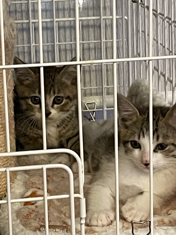 | 特徴(性格など) | 元気いっぱいのキジ白兄弟です。 白部分が多い子は何にでも興味を示して馴れるのも早く2日目にはこちらにチョッカイ出してきました。キジ部分が多い子は少し怖がりですが、4日目には甘えてくるように?ビビりですが甘える時はガツガツ来ます笑 |