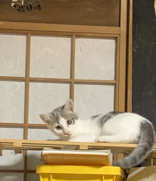 | 里親募集する理由 | 家に出入りしている半ノラの雄ネコが連れてきました。野良猫ではなかったようで、大変人なつこいのですが、ネコ慣れしておらず、うちの先住ネコとと相性が良くない感じです。可愛がってくれる方を募集しています。 | ||