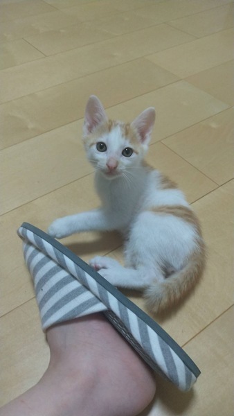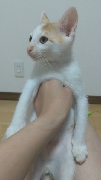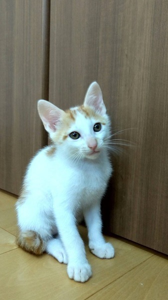 | 特徴(性格など) | 仮名:スイ 白が多めの茶シロで、少し短いかぎしっぽをふりふりするのが可愛いです。 性格は少し慎重派、保護時はシャーシャーしていましたが、数日でお膝に乗ってきました。 初めての人はまだ隠れてしまいますが、本当は遊ぶの大好き人も大好きです。 健康状態 良好 体重 1.8kg(7/24) 去勢手術(6/27) 今後の医療措置 なし |