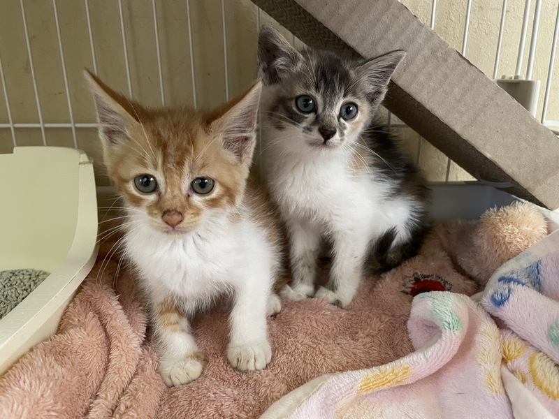 | 特徴(性格など) | 保護当初は兄弟で固まりあまり食べませんでしたがよく食べるようになりました 三毛猫は女の子 茶白は男の子です どちらも長毛で小さくて可愛い兄弟です ノミダニ駆除済み 検便済み エイズ白血病ともに陰性 |