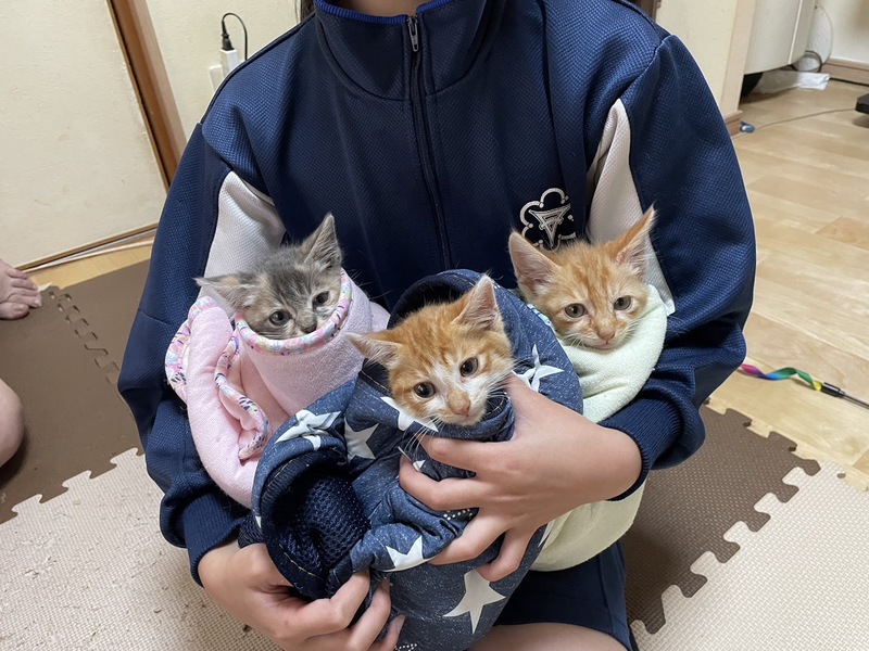 | 里親募集する理由 | 漁港では常にカラスやトンビがいて子猫達を狙っています 半月ほど前、カラスが子猫を咥えていったと聞き漁港に行ったスタッフが母猫と3匹の子猫がいたのでカラスが子猫達を咥えていく前にと母猫、子猫3匹を保護しました 漁港では毎年たくさんの子猫達が無残な最期を迎えています そうなる前にと保護し助かった命を里親様に繋げたいと思っています よろしくお願いいたします |