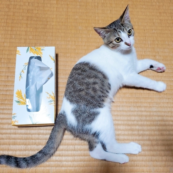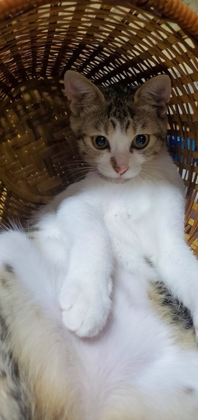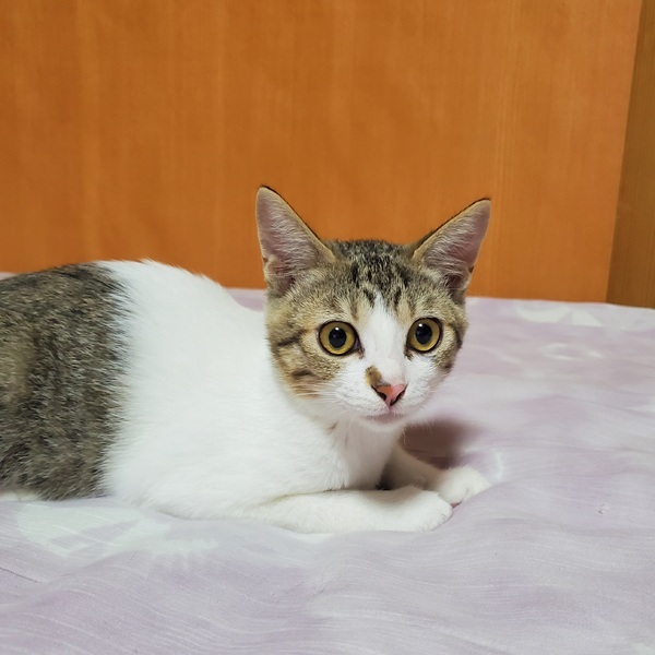 | 特徴(性格など) | 11/26(日)筑紫野市のフリースペース カランにて開催【岡田ほごねこ譲渡会】に参加します! 歴代の保護猫との比較になりますが、かなり活発で遊ぶのが大好きです。 人見知りせず、物怖じしない性格です。 甘えモードになると喉をゴロゴロ鳴らしてスリスリしてきます♪ 抱っこ大丈夫です。 人に寄り添って寝てくれます。 トイレ失敗ありません◎ しっぽは真っ直ぐ、左前足の手根球が小豆色で、左後足の掌球に模様があり、それ以外の肉球はピンク色で、目の色は黄色です。 柄は、白が大半、顔まわりと下半身がキジトラです。 目は大きい方だと思います。 (まだ子猫なので成長過程で変わることもあります!) Instagramにて保護の経緯、日々の様子を公開しています。 ぜひ、こちらもご覧下さい! https://www.instagram.com/satooya_bosyu_/ |