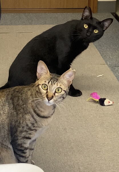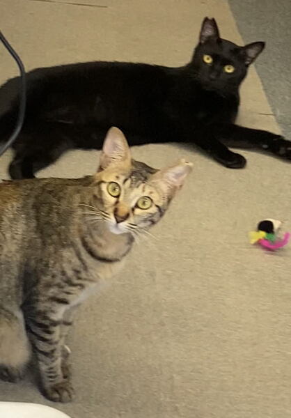 | 特徴(性格など) | ●猫の種類 ①黒(オス) 仮名:ひろ君 尻尾は長い ②キジさび(メス) 仮名:きさちゃん 尻尾は長い ●猫の年齢 1歳位 ●健康状態 良好 ノミ・ダニ駆除済み 避妊・去勢 済み ●現在いる場所 大野城市 ●現在の様子、性格、アピールポイントなど きさちゃんは撫でるとゴロゴロすりすりと甘えてきます。 ひろ君は触られるのはまだちょっと苦手ですが、2匹で追いかけっこをして楽しく遊んでいます。 ひろ君はちょっと警戒はしますが、おやつを食べてる時は撫でることも出来ます。 きさちゃんはものすごく甘えん坊になりました! 撫でられるのが大好きでいつも撫で待ちをしてて、撫でるとぐにゃぐにゃにとろけます(*^▽^*) |