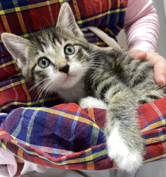 | 特徴(性格など) | キジ白のポポロくん♡ 兎にも角にも甘えん坊で食いしん坊!!コロンっとした可愛いフォルムです♡ 動き出したら止まらないお元気boy! さんぽう(黒猫)と兄弟です。月齢が幼いため兄弟一緒での希望の方を優先させていただきますm(_ _)m |