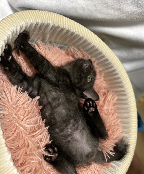 | 特徴(性格など) | 黒猫のさんぽうくん♡ お膝にのってくつろいでくれます♡ 人が大好きな子です! 兄弟の中では控えめなタイプ(* ᴗ͈ˬᴗ͈)” ポポロ(キジ白)と兄弟です。 月齢が幼いため兄弟一緒での希望の方を優先させていただきますm(_ _)m |