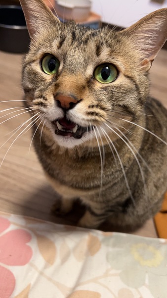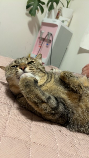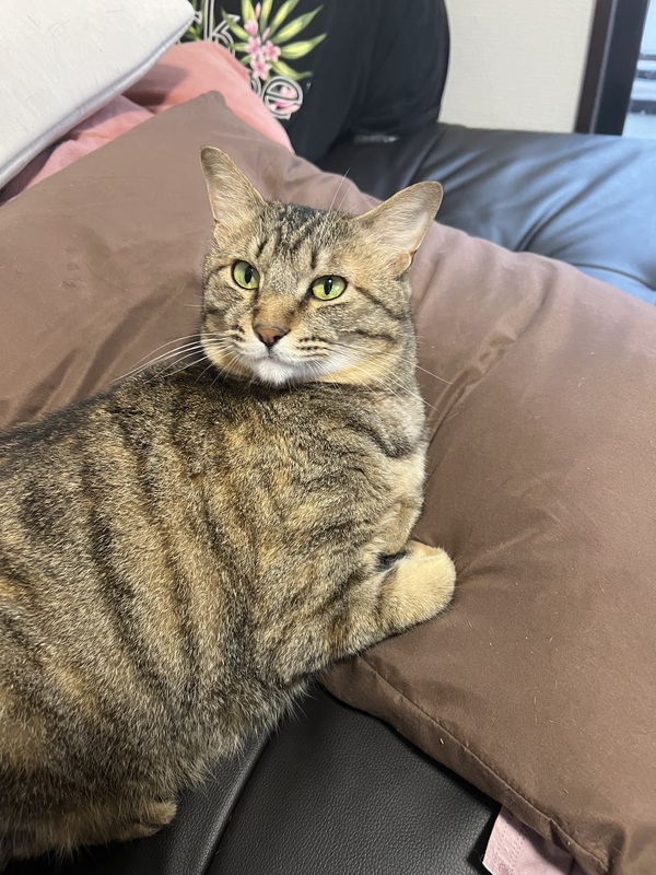 | 特徴(性格など) | キジトラさんです。 性格は大人しく甘えん坊さん。 ほぼ一日ゴロゴロしています。 部屋の中を走り回ったりしません、 |