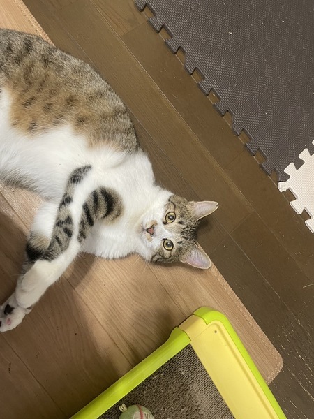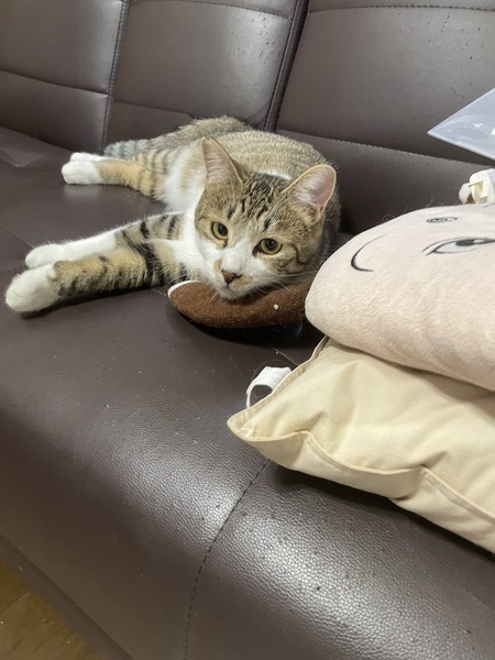 | 特徴(性格など) | キジ白の男の子でたぬきのようなふわふわなしっぽがトレードマークです! 甘えん坊で元気いっぱいの食いしん坊。愛らしいという言葉がぴったり。 人にも猫にも慣れているとても可愛い性格良しな猫さんで、一緒にいるとこちらも元気をもらえます! |