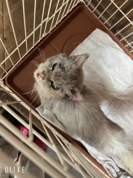 | 里親募集する理由 | 道にうずくまっていて、轢かれそうで怖かったので保護しました。 病院も連れて行きましたが、やはり我が家でわ飼うことができません。 里親さんを探しています。 |
