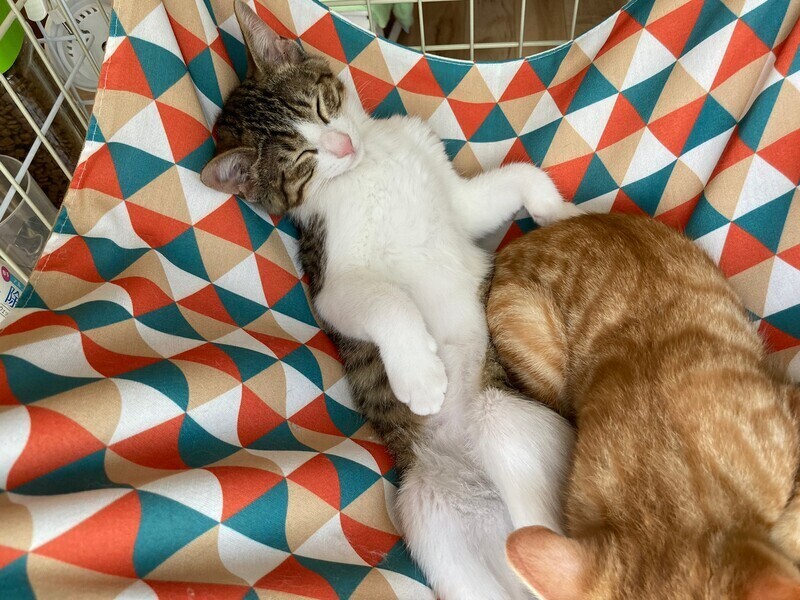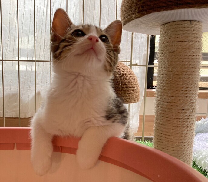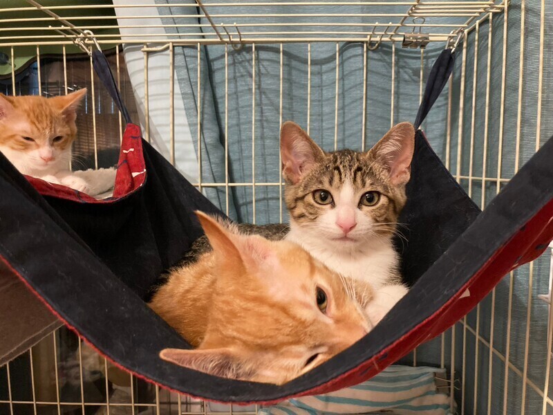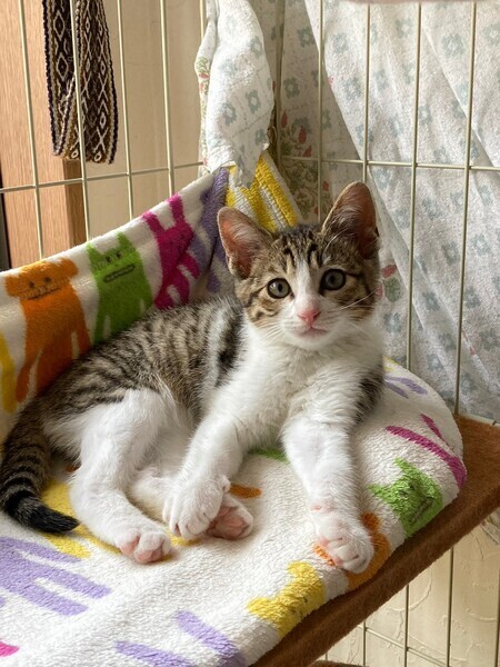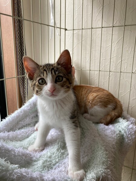| 特徴(性格など) | 5月中旬、地域猫活動中に母猫とその子猫5匹を保護しました。 そのうちの三兄弟の1匹、とても元気なクリクリおめめのキジ白男子『マサラくん』です。 『チャナくん』と『スコッティくん』は兄弟です。 生後推定2ヶ月半(6/15現在) よく食べよく寝る健康体! 保護してすぐはビビりさんでしたが、だんだん甘えるようになりました。 三兄弟はとっても仲良しで毎日三匹で大暴れしています。 仲良し兄弟なので兄弟一緒にお迎えいただける方を優先いたします。 先住猫ともよく遊ぶので猫のいるおうちもOK。 やんちゃな甘えん坊男子好きにおススメです♡ まだ小さいので猫だけのお留守番が長時間でないおうちを希望します。 |