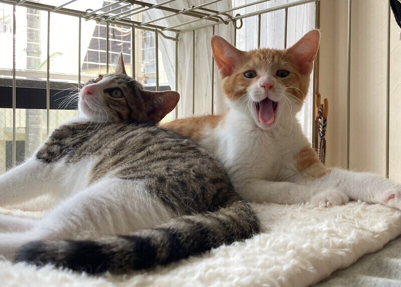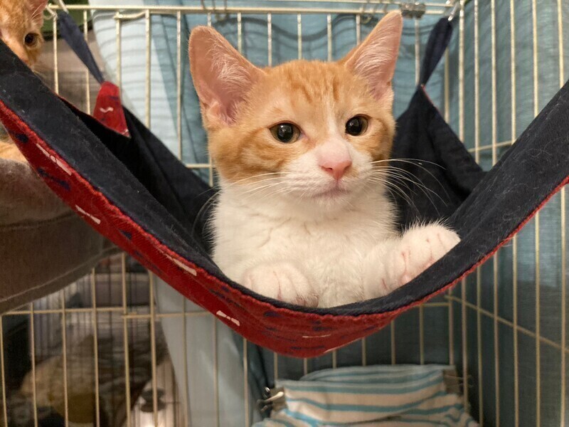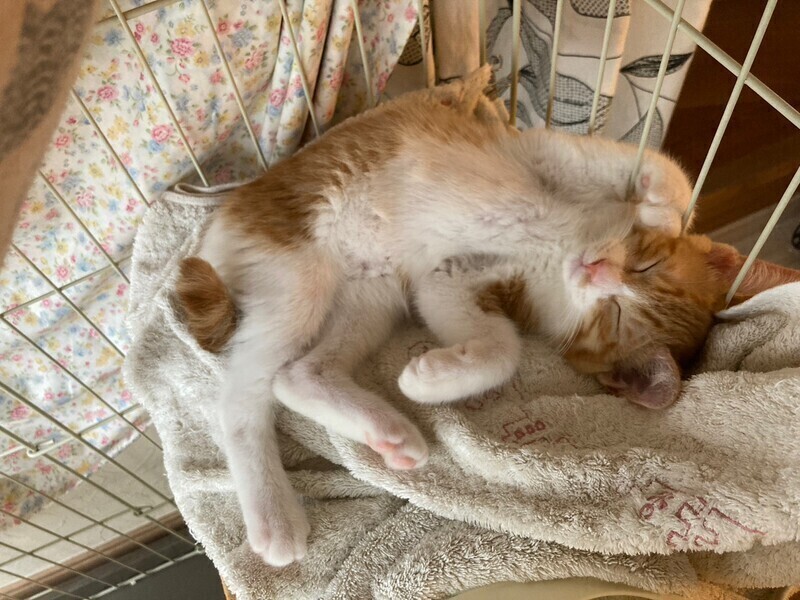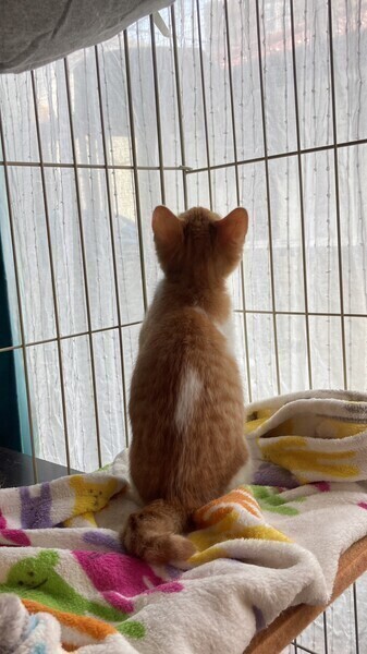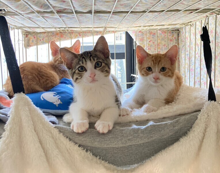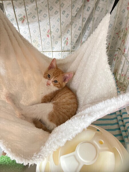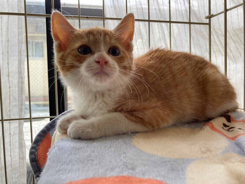 | 特徴(性格など) | 5月中旬、地域猫活動中に母猫とその子猫5匹を保護しました。 そのうちの三兄弟の1匹、とても元気なお困り顔のシャイボーイ茶白男子『スコッティくん』です。 『チャナくん』と『マサラくん』は兄弟です。 生後推定2ヶ月半(6/15現在) よく食べよく寝る健康体! 保護してすぐはビビりさんでしたが、少しずつ甘えるようになりました。 いつもお困り顔で、三兄弟の中では一番シャイです。 仮面をかぶった様なお顔と、背中の模様が特徴的♡ 三兄弟はとっても仲良しで毎日三匹で大暴れしています。 先住猫ともよく遊ぶので猫のいるおうちもOK。 ちょっぴりシャイな甘えん坊男子好きな方いかがですか? まだ小さいので猫だけのお留守番が長時間でないおうちを希望します。 |