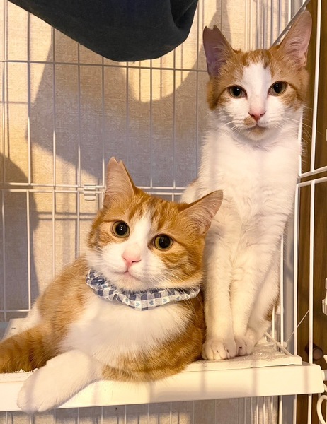 | 特徴(性格など) | 茶白のボブテイル♥ 【2にゃんの性格】 ごはん、おやつ、遊ぶのが大好きです! やんちゃで天真爛漫な性格です。 兄弟でにゃんプロをしたり追いかけっこをしている姿がとってもかわいいです♥ まだすこし人馴れ修行を頑張ってもらっていますが、人間と遊んだりおやつをもらうのも大好きです。 トト・リリと一緒にゆっくり家族になってくださる方を募集しています! |