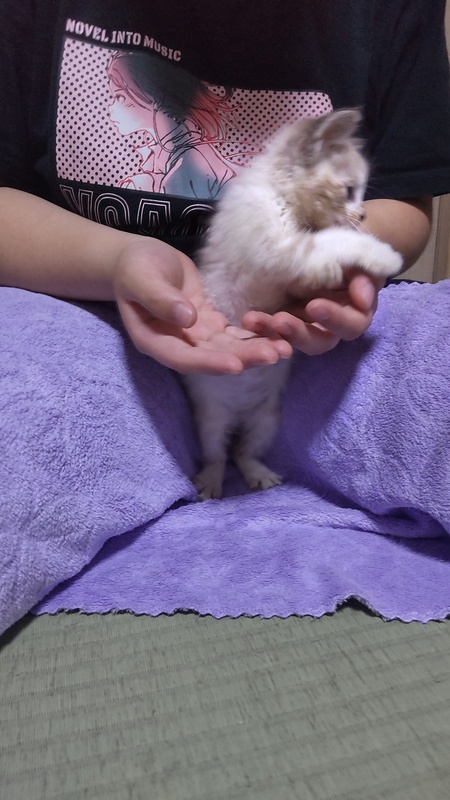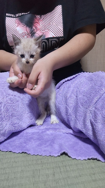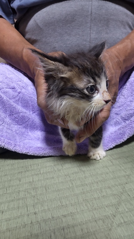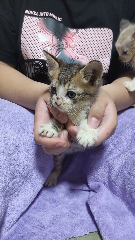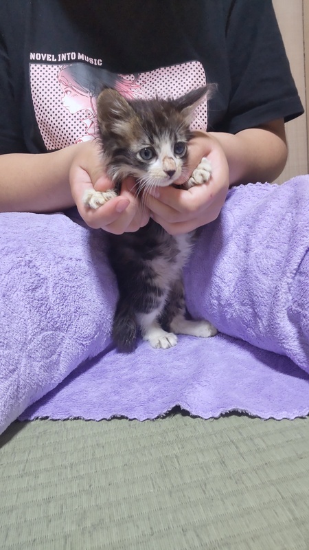 | 里親募集する理由 | 娘が学校のそばで3匹保護しました 側溝の中にいたそうです 我家には先住猫が2匹いて重度の障害児もいるためにこれ以上は増やせずに募集をすることにしました |