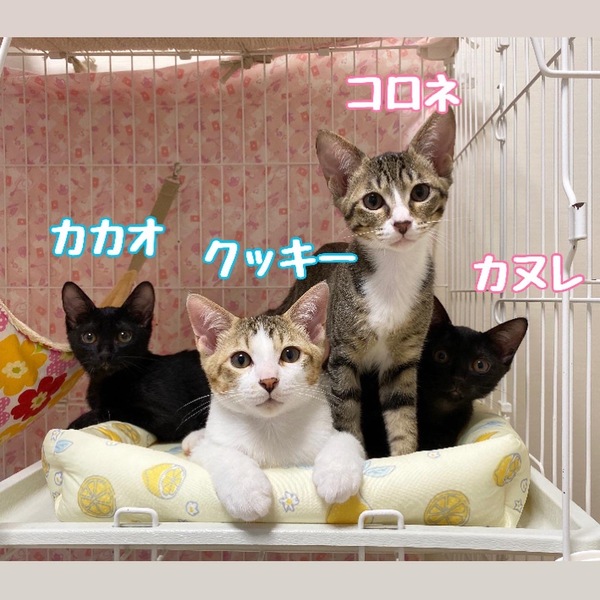 | 特徴(性格など) | 7/16(日)奈良市で開催する譲渡会に参加予定です。 ↓詳細は下記をチェック↓ https://www.instagram.com/nara.chiiki.neko/ https://www.facebook.com/nara.chiiki.neko/ 譲渡会以外でも個別お見合いが可能ですので、ご応募お待ちしております。 コロネちゃん♀ 2ヶ月の女の子 健康状態良好・医療ケア済 TNR現場にて保護しました。 6兄妹で、まだそこまで性格に大きな差は感じられませんが、みんな好奇心旺盛で、人懐っこく、甘えん坊で、とても可愛いです♡ カカオ・タルト・クッキー・ムース・コロネ・カヌレの6兄妹です。社会性を身につけたりする為にも、出来れば兄妹2匹ずつでご縁があると嬉しいですが、お留守番が短いおうちなどで1頭飼い希望の方もご相談くださいm(_ _)m ↓動画はこちらから↓ https://www.youtube.com/watch?v=06FwQPaG4oc |