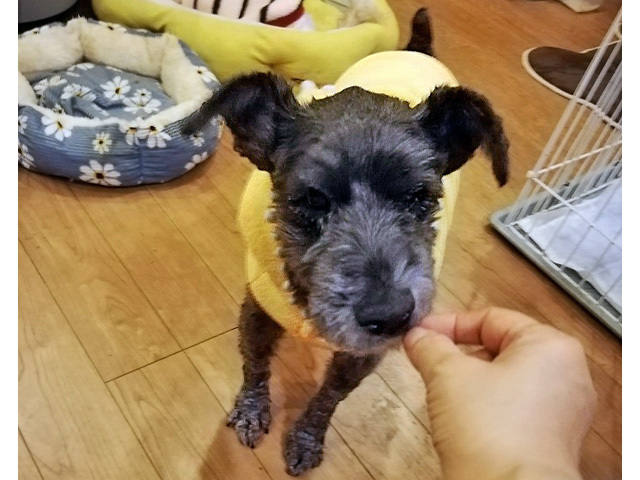 | 特徴(性格など) | ■ 基本情報 ・管理番号 【221108-32】 ・犬種・性別・名前(仮) Mシュナウザー ♂ モック ・年齢・体重 推定9~10歳 体重 7.3kg ・特徴 毛色は眉や口回りに白は入っていないブラック?です。少し大きめのしっかりした体格の男の子です。 ・性格 穏やかでフレンドリーな性格です。 目があまり見えていないせいか物音や人の急な動きにびくつくことがあるちょっと気弱な大人しいワンコです。 ■ 暮らしについて ・日常過ごす場所 普段はリビングでフリーに生活しています。 ・食事 良質な原材料を使ったプレミアムフードのシニア用ドライフードを食べています。 好き嫌いなくよく食べます。おやつや缶詰なども好き嫌いなくたべます。 歯をほとんど抜いたので硬くて大きなものは食べたがりますが誤嚥防止のために小さくしてあげています。 ・トイレ 朝晩のお散歩の時に排泄すると室内での排泄回数は少ないです。 足上げチッコで室内でのほぼ決まった場所でしますが立ち上げ式のシートをはりづらい場所でしているので 現時点では室内ではマナーオムツをしています。 排便はシーツ成功率60%くらいです。お腹が弱くなったことはなく拾いやすい便をしています。 ・散歩 目があまり見えないのであまり出るのを好みませんが、外に出て段差のないところになれば歩くのは好きな様子です。 ・お留守番 フリーで問題なくできています。 サークルでのお留守番もできますがシーツを入れておくとホリホリして破いていたことがあります。 ・外出 とくに問題ありません。ハードキャリーで大人しく移動できます。車酔いもありません。 ・お手入れ シャンプー、ブラッシング、点眼など素直にさせてくれます。 ・他犬との関係 概ね問題なく過ごしていますが、ぐっすり寝ている時に身体に触れられるとヴヴヴと言うことがありますが言うだけで攻撃したりすることはありません。 しつこい犬にはわかりませんが、若い犬には遊びに誘うこともあります。 ・人との関係 従順で人なつこいです。穏やかな性格です。 ・お願いしたいこと トリミング必要です。日々のブラッシングや定期的なトリミングをお願いします。 右目が小眼球になっており、視力があまりありません。家の中や屋外での段差などにきをつけてあげてください。 あまり見えないせいか臆病でもありますので小さなお子様などとの触れあい時には配慮をしてあげてください。 嫌なことをされた時、ひどく驚いた時、の反応はわかりませんので。 ■ 医療管理について(実施日) ・混合ワクチン 〇 6種(11/1) ・狂犬病予防注射 近日接種予定 ・フィラリア抗原検査 - (11/1) ・不妊手術 〇 引取時去勢済み ・マイクロチップ 〇 引取時挿入済み ・健康チェック 〇 (11/1) ・スケーリング 〇 (12/23) ・便検査 〇 (11/1) ・その他の医療措置 レボリューション・ブロコックス(11/1) 口腔内処置時に抜歯 口内繊維性過形成切除→病理検査にて非腫瘍性であることを確認 ・必要な継続医療 とくにありません。 ・現在の一時預かり先 千葉県我孫子市 ・預かりスタッフ ドゥ ・預かりブログ ARChドゥの預かりブログ「モック」(2023/3/12~) ・https://ameblo.jp/archsana0828/theme-10118050609.html ・移動前 預かりブログ ちばたりあんな(2022/12/6~) 「モック」 ・http://chibatarianna.jugem.jp/?cid=296 「S★KG」 ・http://chibatarianna.jugem.jp/?cid=218 ・プチ預かりブログ まいにちわんこ「モックん」(2022/11/19~12/6) ・https://ameblo.jp/pucchobikke/theme-10117587453.html ・引取時の様子 ・http://chibatarianna.jugem.jp/?eid=7936 |