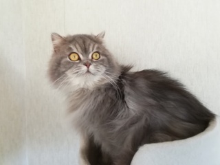 | 特徴(性格など) | グレー色の立ち耳スコティッシュフォールドです、人懐こく甘えたです。 | ||